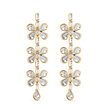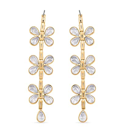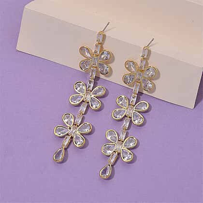 Adorn yourself in the beauty of nature with these floral-style Austrian White Crystal earrings. These ultra-feminine, romantic earrings feature a row of floral motifs adorned with pear-cut crystal stone forming delicate petals. These dangling earrings with cascading blooming flowers feels airy,glamorous, and effortlessly graceful. They perfectly help frame the face and can help add oodles of shine to your look. At the end lies a pear-cut Austrian crystal that further helps to add a sense of softness and dimension to the design. Crafted in gold plated pure alloy, these earrings are ideal for those who are hopeless romantics!