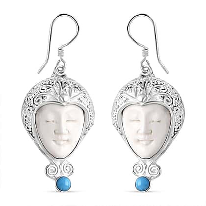 Bali Legacy Ox Bone & Sleeping Beauty Turquoise Earring with Hook Sterling Silver 12.12 Ct, Silver Wt. 16.35 Gms.
