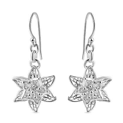 Introducing a mesmerising star flower-inspired dangle earring, expertly handcrafted to showcase intricate filigree petals and a delicate, nature-inspired design. Meticulously crafted in 925 sterling silver, these earrings offer durability and enduring shine. Its hypoallergenic metal offers comfort and safety to sensitive skin. Finished with a secure hook fastening clasp, this piece offers secure wear and comfort fit. Lightweight and versatile, they effortlessly add a touch of beauty to any outfit, making them perfect for both everyday wear and special occasions. Give your look a fresh floral accent with these captivating earrings.