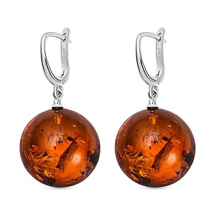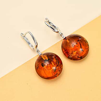 Baltic Amber Solitaire Earrings in Sterling Silver