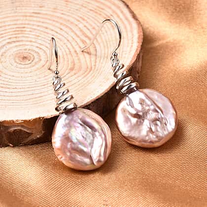 - Spot a trendy look wearing this shiny pair dangling with the coin Baroque pearls