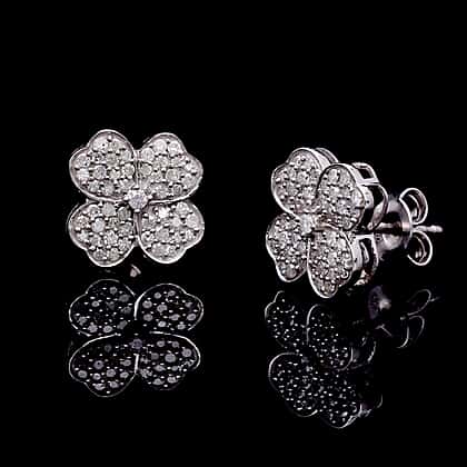 Embrace elegance with these diamond clove stud earrings, showcasing timeless beauty. Each petal of the clover design is adorned with sparkling diamond rounds, capturing light and attention. Crafted in platinum overlay sterling silver, these earrings offer a luxurious and durable finish. The intricate detailing of the petals and the high-quality diamonds make these earrings a perfect choice for any occasion. Wear them to add a touch of sophistication to your everyday look or to complement your evening attire.