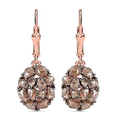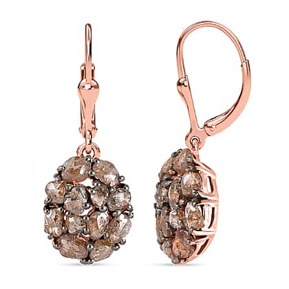 Biggest Natural Champagne Rose Cut Diamond Earrings in Vermeil Rose Gold Plated Sterling Silver 3.25 Ct.