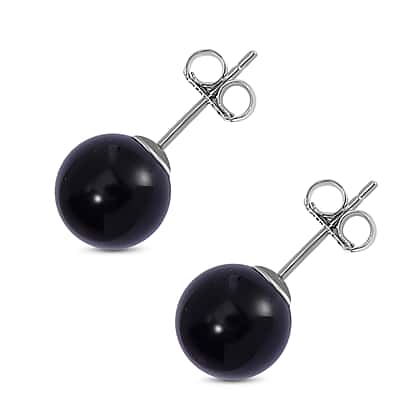 Black Agate Earring with Push Back in Rhodium Overlay Sterling Silver 9.50 Ct.
