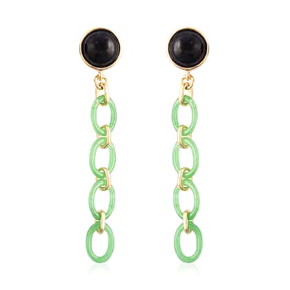 10.75 Ct. Black and Green Jade Dangle Earrings in Yellow Gold Over Sterling Silver