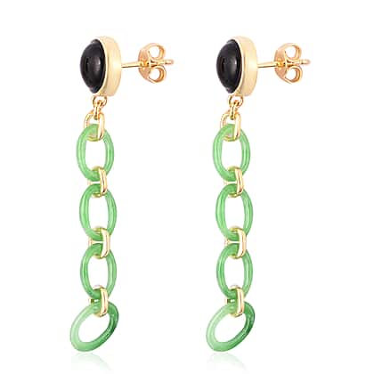 Black and Green Jade Dangle Earrings in Yellow Gold Over Sterling Silver 10.75 Ct.