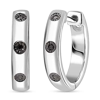 Black Diamond Hoop Earrings in Platinum Overlay