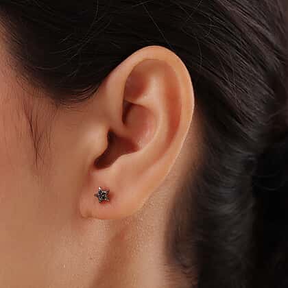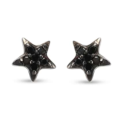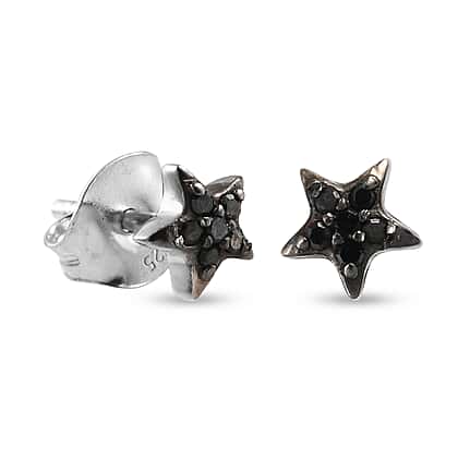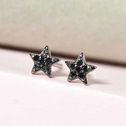 0.08 Ct. Black Diamond Star Stud Earrings in Platinum Plated Sterling Silver