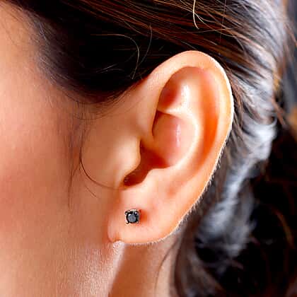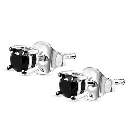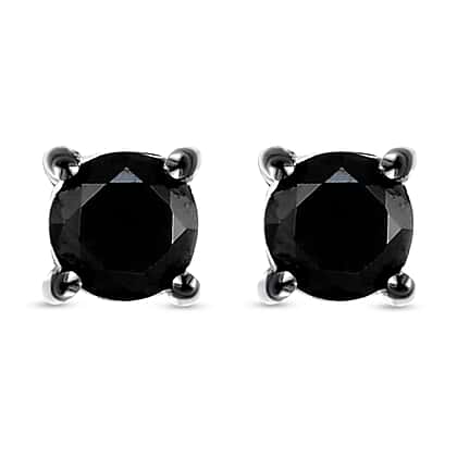 Black Diamond Solitaire Stud Earrings in Platinum Plated Sterling Silver 0.54 Ct.