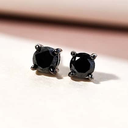 Black Diamond Stud Earrings (With Push Back) in Platinum Overlay Sterling Silver 0.54 Ct.