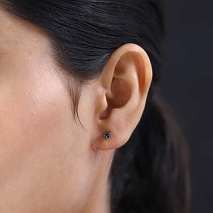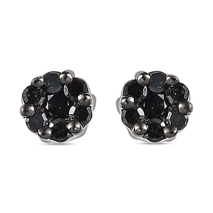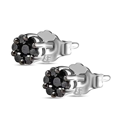 Black Diamond Stud Earrings with Push Back in Rhodium Overlay Sterling Silver 0.14 Ct.