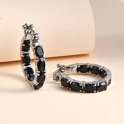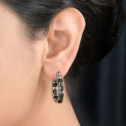 Black Spinel J Hoop Half Hoop Earring 8.764 Ct.