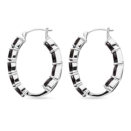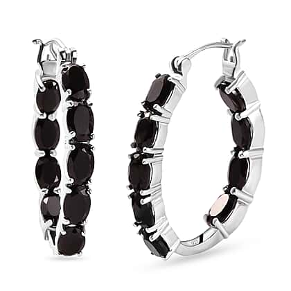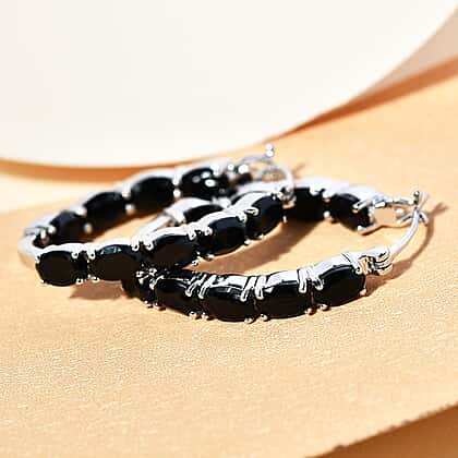 Black Spinel Hoop Earrings in Platinum Plated Sterling Silver 9.97 Ct, Silver Wt. 7.00 Gms.