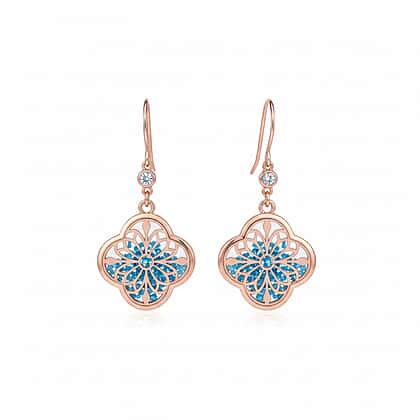 Blue Apatite Earring with Hook in Rose Gold Plating Sterling Silver 6.80 Ct.