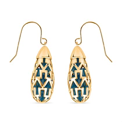 Blue Apatite Earring with Hook in Yellow Gold Plating Sterling Silver 11.00 Ct, Silver Wt. 6.00 Gms.