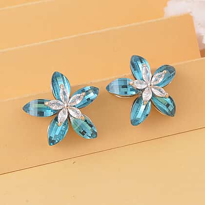 Adorn your earlobes with these stunning blue and white cubic zirconia plumeria stud earrings. These earrings are crafted from durable metal in silver tone, giving a unique look. It is studded with vivid shapes, sizes and colours of gemstones secured in a prong setting, giving it bright sparkle and shine. You can wear it all day long for a glamorous look.