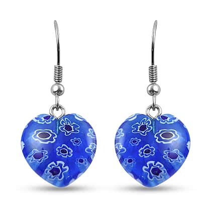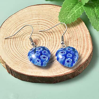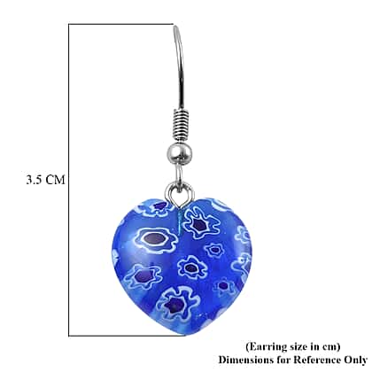 Blue Color Murano Glass Fish Hook Earrings in Stainless Steel 26.0 Ct