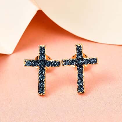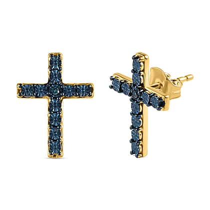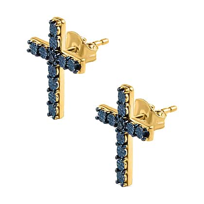 Blue Diamond Cross Earring ( With Push Back) in Vermeil YG Sterling Silver 0.02 ct