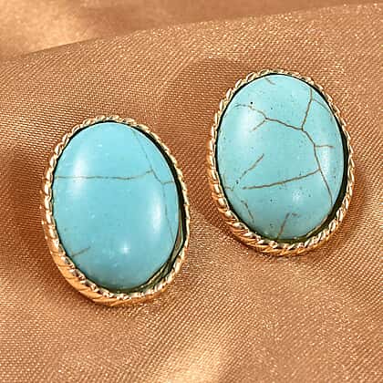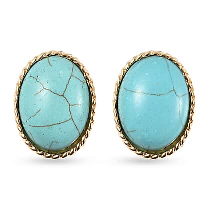 15X20mm Blue Howlite Stud Earrings in Yellow Gold Tone