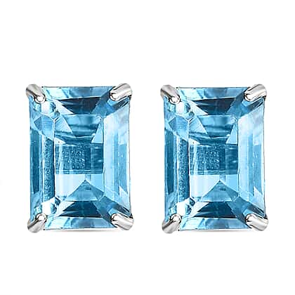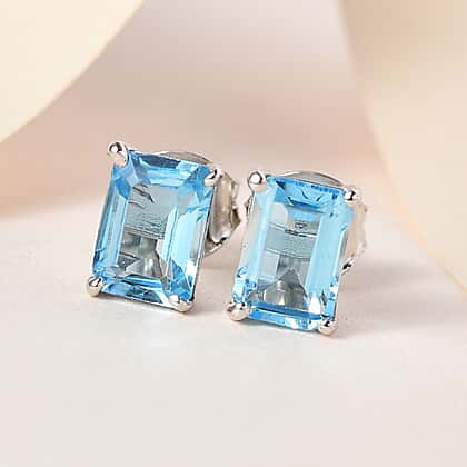 Blue Topaz Solitaire Stud Earrings in Platinum Overlay Sterling Silver 2.43 Ct.