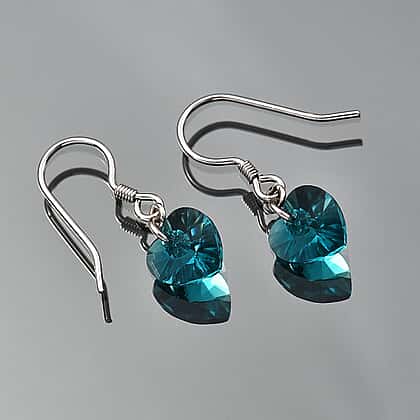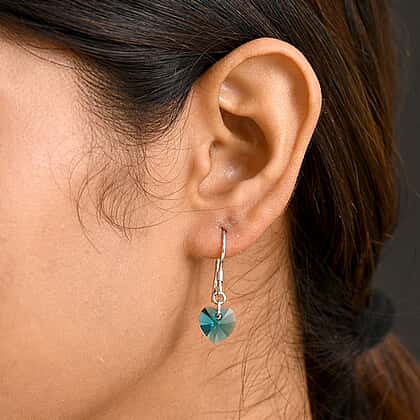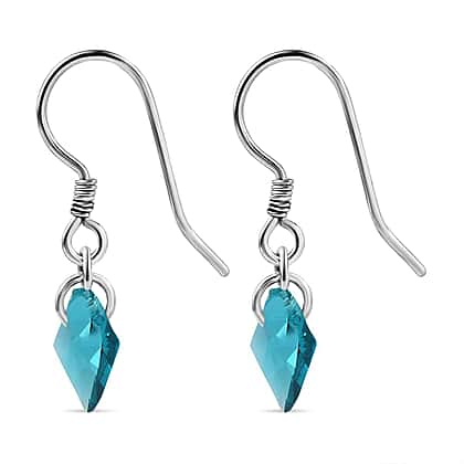 Blue Zircon Swarovski Crystal J Hoop Earring in Rhodium Overlay Sterling Silver 5.12 Ct.