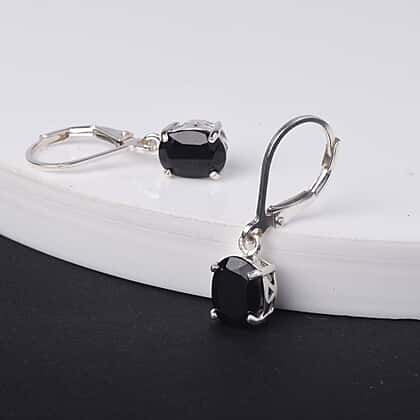 2.18 Ct. Boi Ploi Black Spinel Solitaire Earrings in Rhodium Plated Sterling Silver