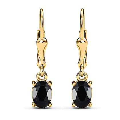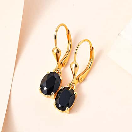 3 Carat Thai Black Spinel Solitaire Lever Back Earrings in Gold Plated Sterling Silver