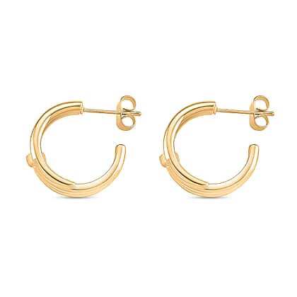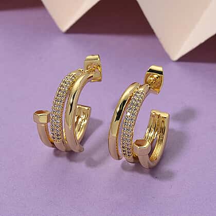 Petite huggies are great for everyday wear and layering too, if you want such chic earrings in your collection, consider these Austrian crystal hoop earrings. They create a multi-hoop effect and feels like more of a statement earring with a casual spin. Crafted in brass with a rich yellow-gold plating, the design features a dual-band silhouette that blends smooth metallic curves with a shimmering crystal-lined bar. Bold and dramatic, these half-hoop earrings come with a push-back, butterfly clasp closure.