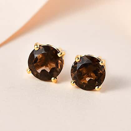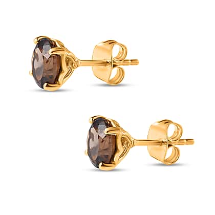 2.50 Ct Brazilian Smoky Quartz Solitaire Stud Earrings in Gold Plated Sterling Silver
