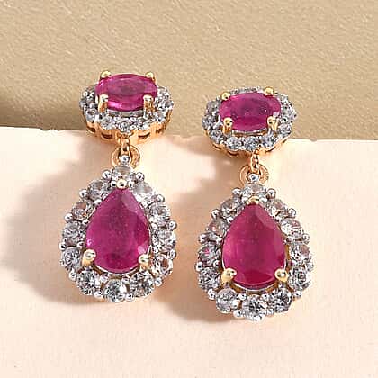 Cabo Delgado Ruby and Natural Cambodian Zircon Dangling Earrings (With Push Back) in 18K Vermeil Yellow Gold Overlay Sterling Silver 4.22 Ct.