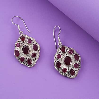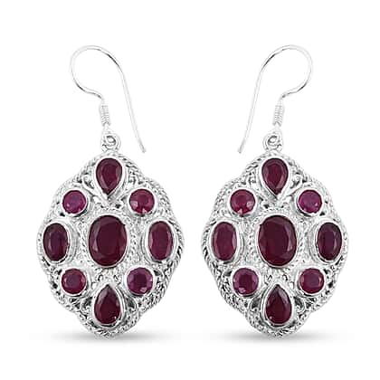Cabo Delgado Ruby (FF) Fish Hook Earrings in Sterling Silver 12.54 Ct, Silver Wt. 13.45 Gms.