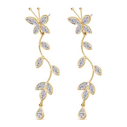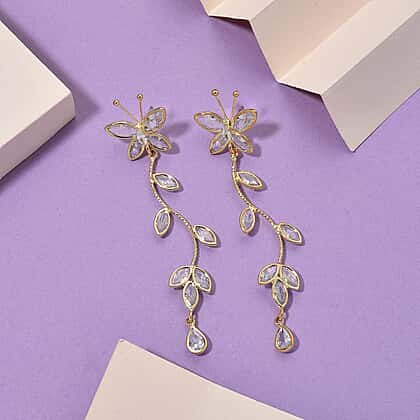 The scene of butterflies flying around the flowers feels like pure magic! These breathtaking butterfly-style, Austrian crystal earrings pay tribute to the whimsical beauty of these delicate creatures.These dangling earrings studded with Austrian crystals feature a butterfly at the top attached to a curvy chain that is adorned with petal-shaped gems. At the ends lies the pear-cut sparkling gemstone which helps to add a sense of uniqueness and feminine elegance to the design. Crafted in pure alloy with yellow gold plating, these butterfly earrings feel straight out of a garden! It's graceful, elegant, and can delight one who has a penchant for nature-inspired earrings.