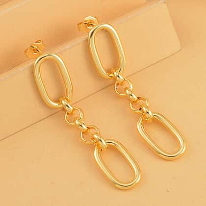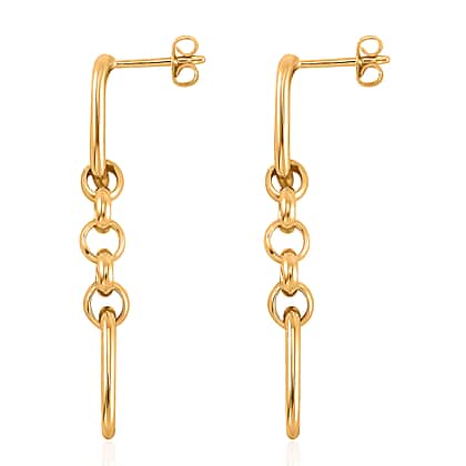 These minimalist chain earrings redefine elegance. Crafted in a lustrous yellow gold tone, they add understated glamour to any ensemble. Their lightweight construction ensures comfort throughout the day, while their versatility allows you to mix and match effortlessly. The airy links add a bold touch to the 4.4cm earrings that rest comfortably on your ear with push post clasps.