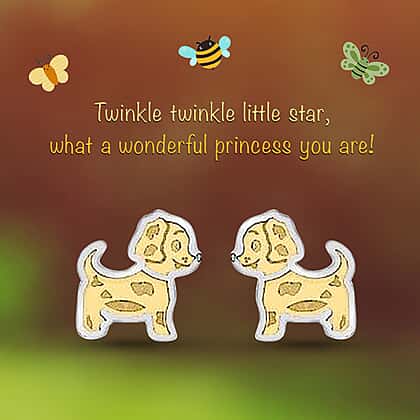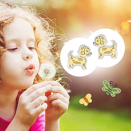 Children's Doggy Stud Earrings in 9K Yellow and White Gold