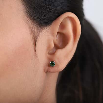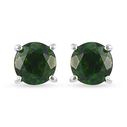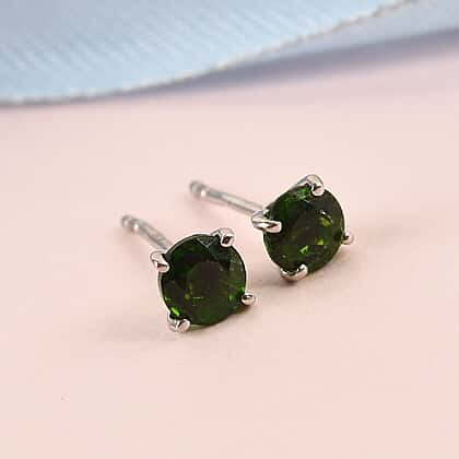 1.05 Ct. Chrome Diopside Solitaire Stud Earrings in Platinum Plated Sterling Silver