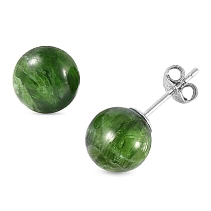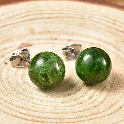 8.5 Ct. 7-9mm Chrome Diopside Solitaire Ball Earring in Rhodium Plated Sterling Silver