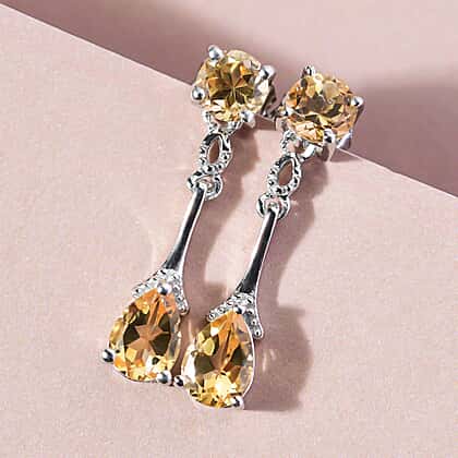 Citrine Linear Drop Dangle Earrings in Platinum Plated Sterling Silver 2.27 Ct.