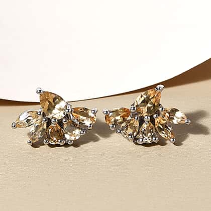 Citrine Earrings (With Push Back) in Platinum Overlay Sterling Silver