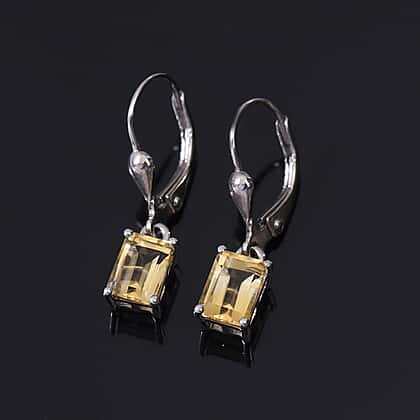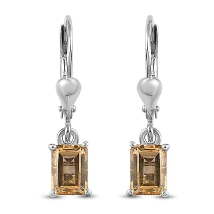 Citrine Lever Back Earrings in Platinum Overlay Sterling Silver 1.99 Ct.