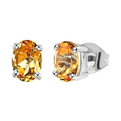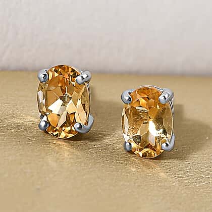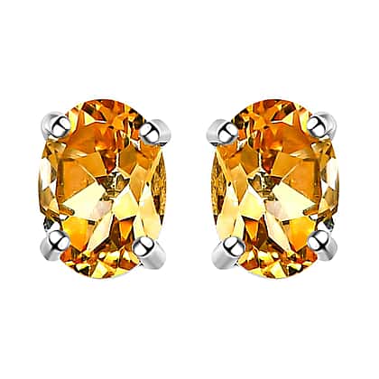 Citrine Stud Earrings in Platinum Overlay Sterling Silver 1.43 Ct.
