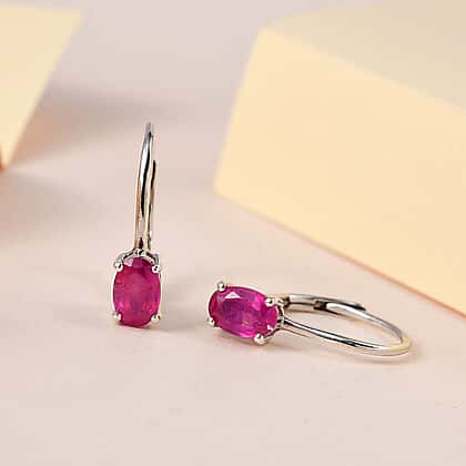 Close Out Deal - Cabo Delgado Ruby Solitaire Lever Back Earrings in Platinum Overlay Sterling Silver 1.33 Ct.