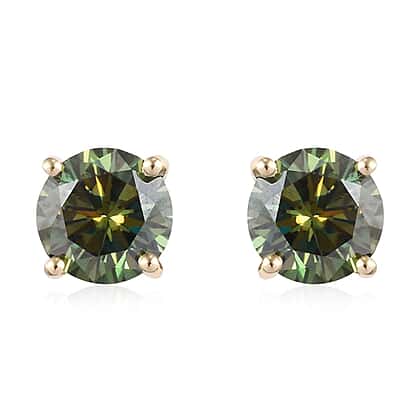 Collectors Edition 2 Carat Green Moissanite Stud Solitaire Earrings in 9K Yellow Gold