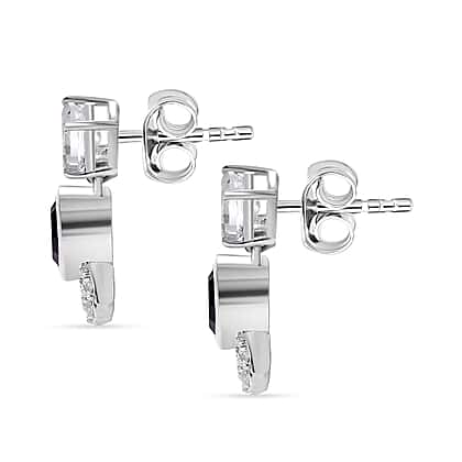 These elegant drop earrings feature a harmonious pairing of African amethyst and white topaz, creating a suave accessory for any occasion. Each earring highlights a vivid 6 mm African amethyst round, cut with precision to amplify its deep purple hue, and two sparkling white topaz ovals (6x4 mm) that add a radiant contrast. The bezel setting ensures both security and style, while the rhodium overlay provides a polished finish and lasting durability.