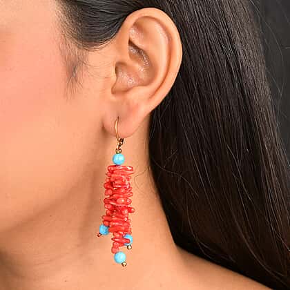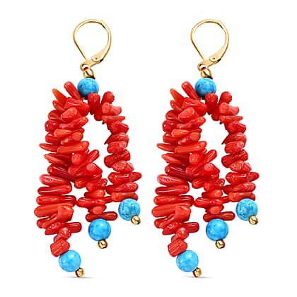 Coral & Magnesite Earring in Yellow Gold Plated 80.00 Ct.