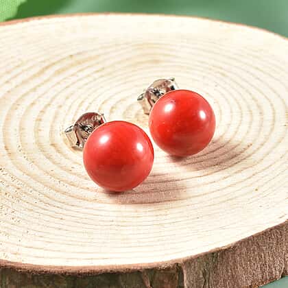 Coral Stud Earrings (with Push Back) in Rhodium Overlay Sterling Silver