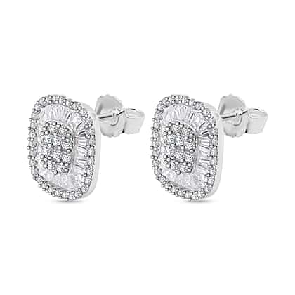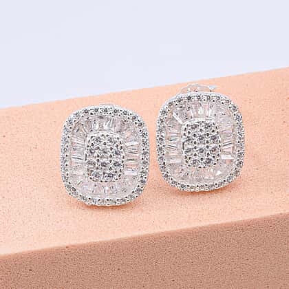 Cubic Zirconia Cluster Earrings With Push Back in Rhodium Overlay Sterling Silver