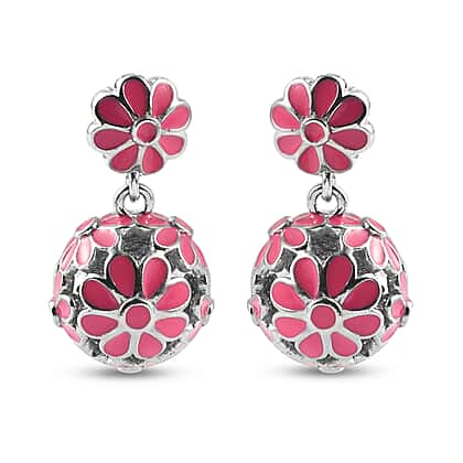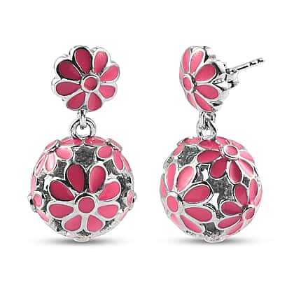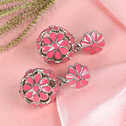 Dangling Enamelled Earrings (with Push Back) in Silver Tone