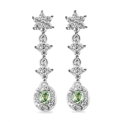 Demantoid Garnet and Natural Cambodian Zircon Dangling Earrings (With Push Back) in Platinum Overlay Sterling Silver 1.75 Ct.