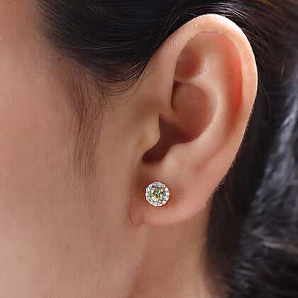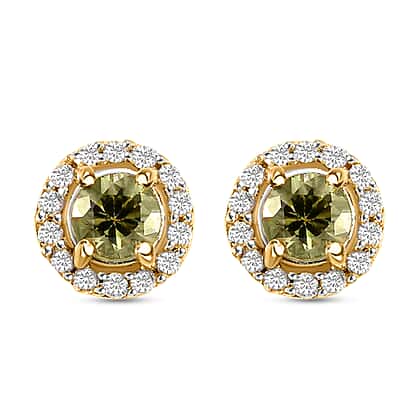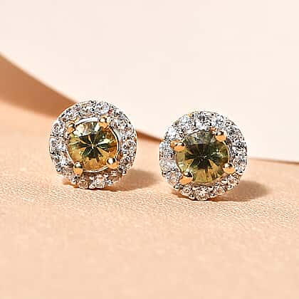 Demantoid Garnet and Natural Cambodian Zircon Stud Earrings in 14K Gold Overlay Sterling Silver