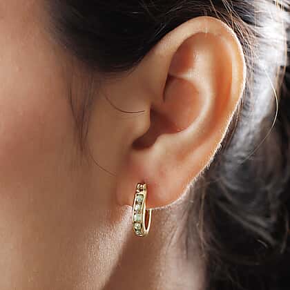 Demantoid Garnet Hoop Earrings in 14K Gold Overlay Sterling Silver